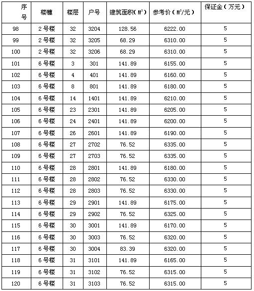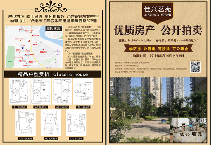 一、拍賣標(biāo)的:坐落于瀘州市江陽區(qū)華陽街道學(xué)院西路372號“佳興茗苑”小區(qū)第一批次住房。(詳見房屋清單)